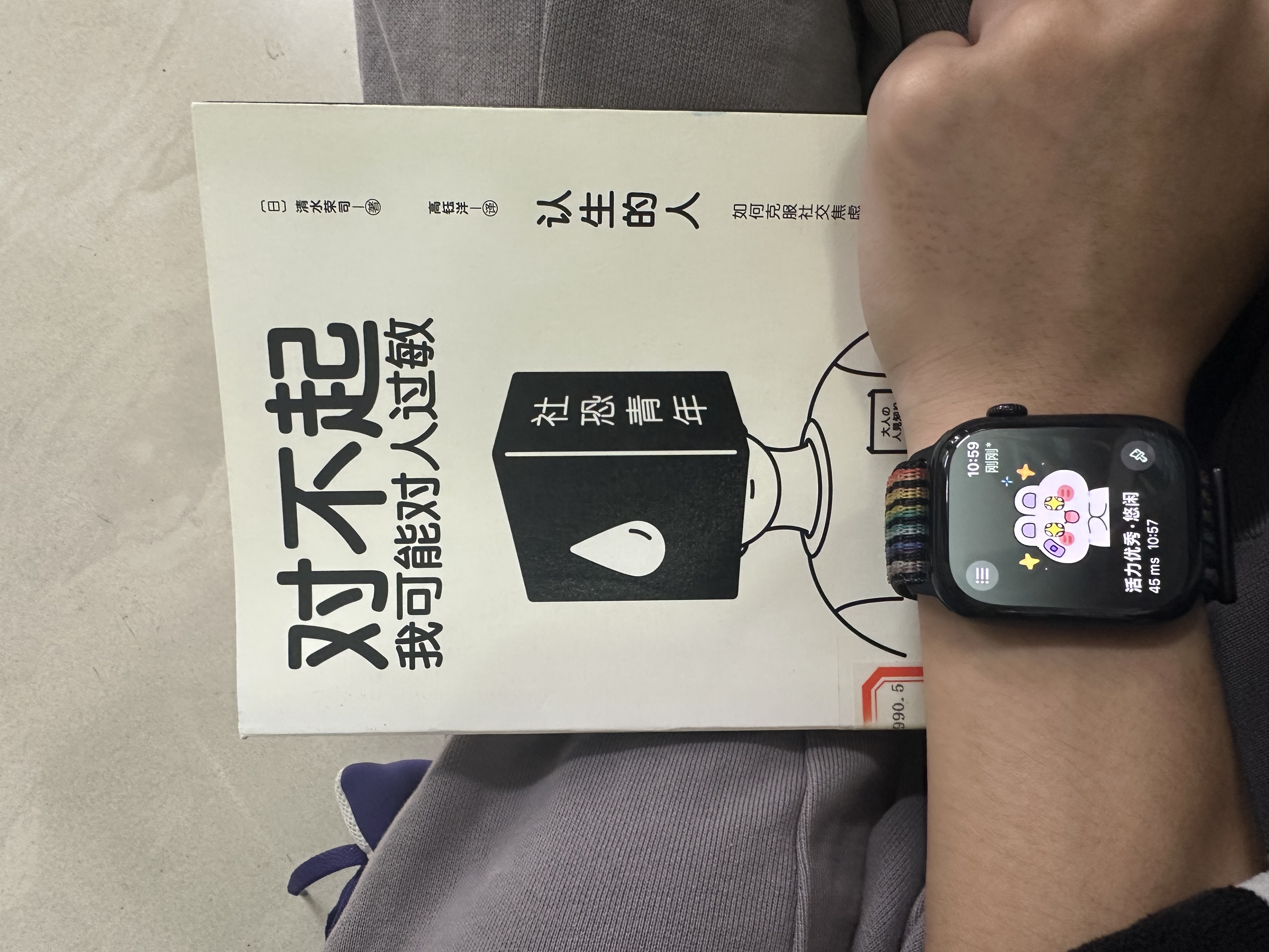 说到这本书,换在以前,我压根不会去看。我觉得我可能是抑郁,但绝不会是焦虑。这根本不需要。但有次周六上午(10月25日),有个关于电脑技术的劳动课,那天睡过头了,慢慢悠悠的到了教室,发现已经签到了(自己在纸上打勾)。这还说啥,打好勾,就可以回去了,但是本着都出寝室了,那就去图书馆看看书吧(已经好久没去过了)。来到图书馆,发现了一本书,名叫《认生的人》,如下图: